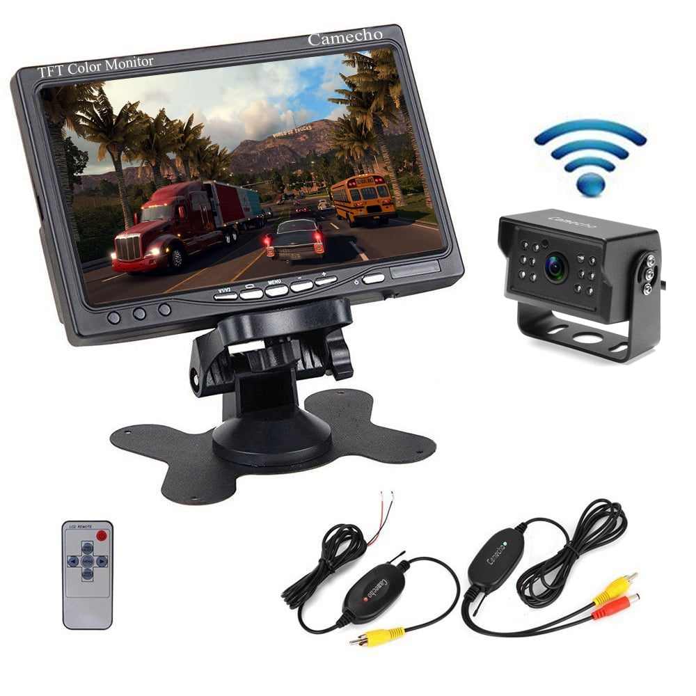 Podofo Updated Wireless Vehicle Backup System 7 Inch TFT Monitor 12 IR